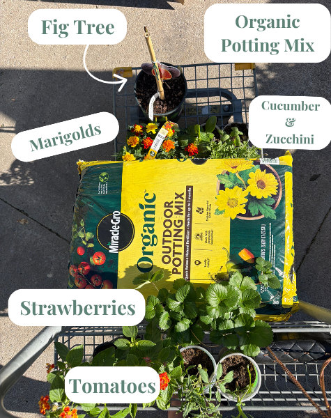 Basil grows extremely well with tomatoes and boosts the tomato plant’s flavor along with deterring pests so I made sure to plant them next to one another. I’m obsessed with basil and use it A LOT so I did get two plants—one on each side of the tomato plant and plenty basil for me to enjoy all season long.